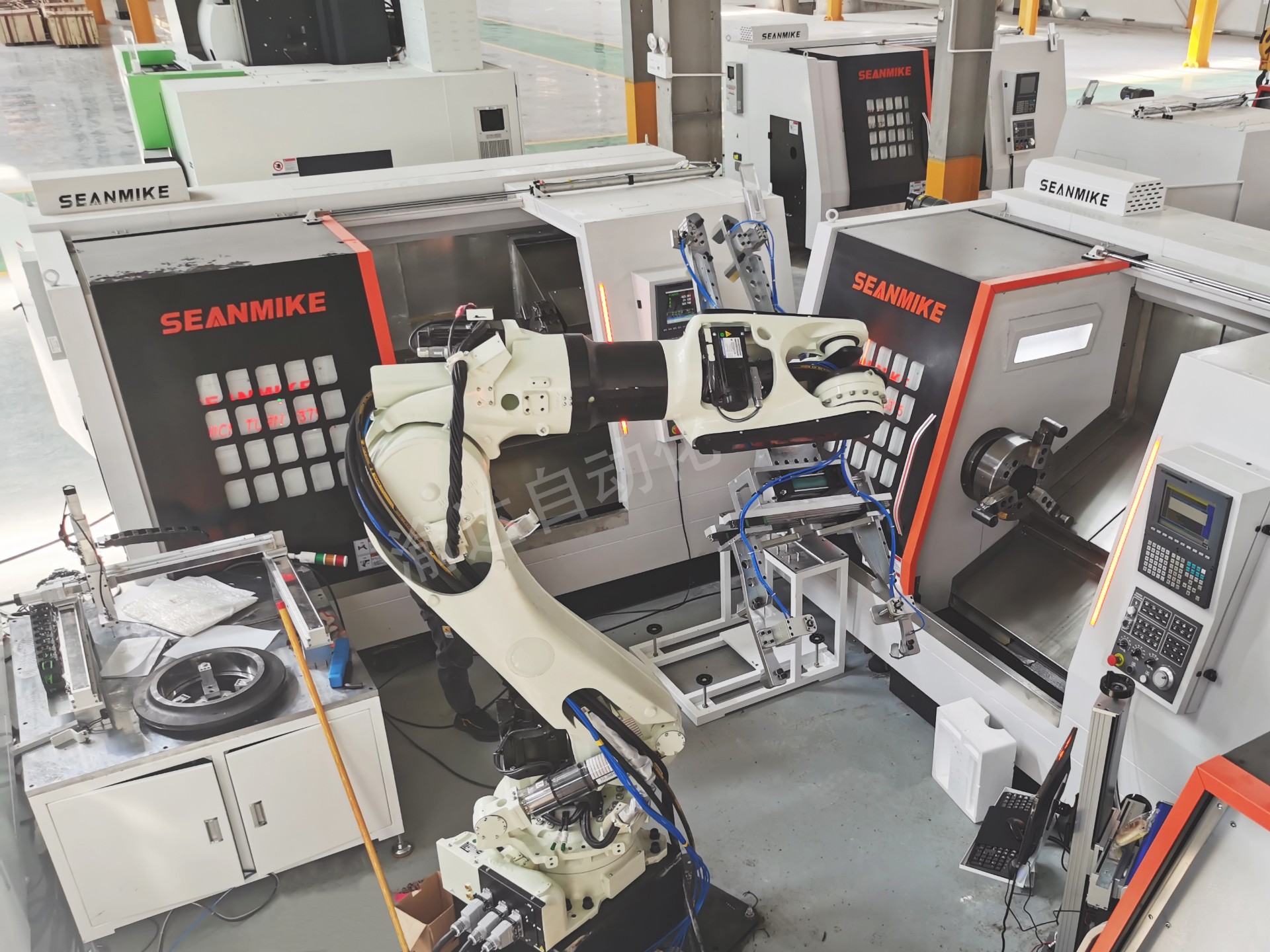 盾構(gòu)機(jī)刀具系列機(jī)器人及自動(dòng)化設(shè)備包含:上下料機(jī)器人、扭矩跑合機(jī)、拆刀機(jī)、注油機(jī)、氣密性檢測(cè)設(shè)備、油壓機(jī)、烤箱、激光焊接設(shè)備、激光打標(biāo)設(shè)備等。